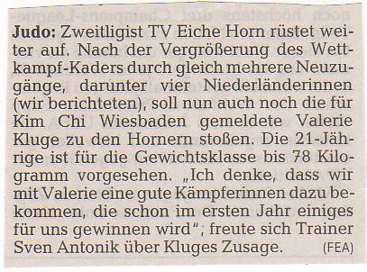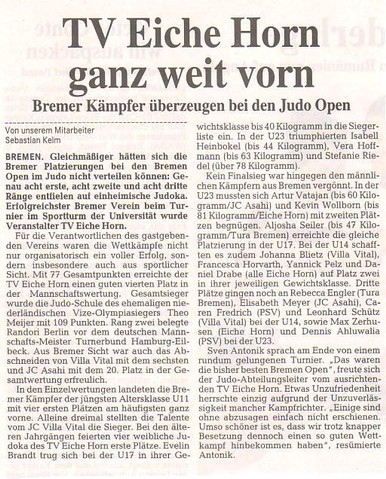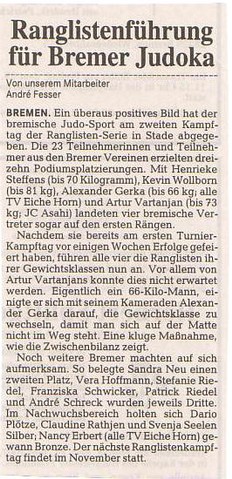 Ranglistenf\'fchrung f\'fcr Bremer Judoka ( Weser-Kurier )