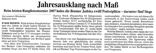 Ranglistenturnier in Stade "Jahresausklang nach Ma\'df" (Weser-Kurier 19.12.2007)