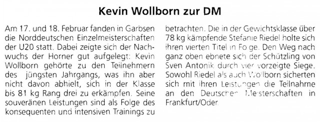 Kevin Wollborn zur DM ( DER HORNER 2/2007 )