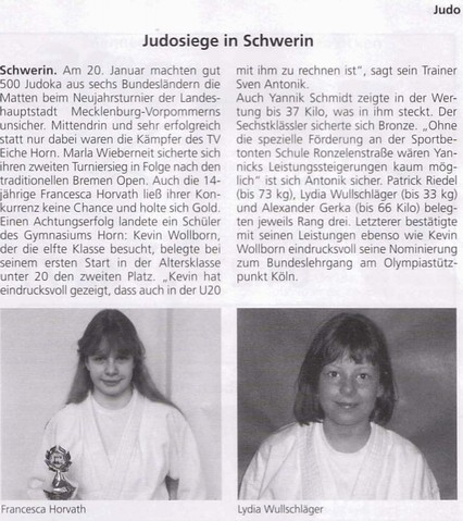 Neujahrsturnier in Schwerin ( Weser-Kurier )