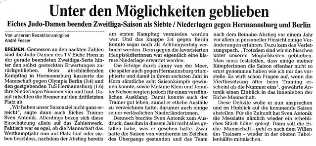 Judo-Damen gelingt Doppelsieg ( Weser-Kurier )