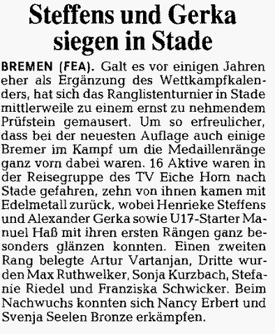 Steffens und Gerka siegen in Stade ( Weser-Kurier )