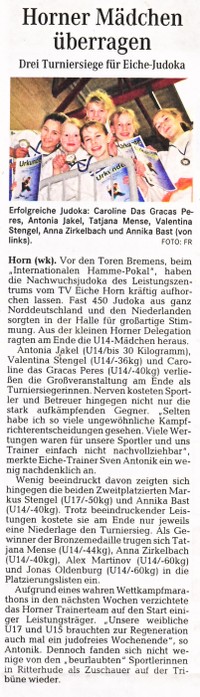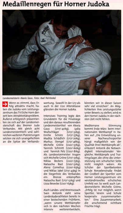 Medaillenregen f\'fcr Horner Judoka ( Weser Kurier 09.02.2012 )