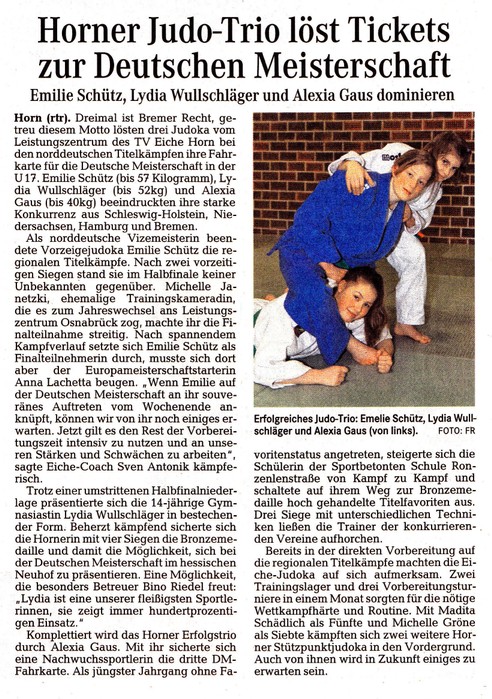 Horner Judo-Trio L\'f6st Ticket zur DM ( Weser Kurier 23.02.2012 )