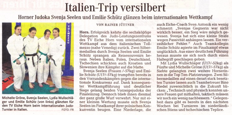 Horner Judoka feiern internationale Erfolge / Antonia Jakel gl\'e4nzt in Stiens