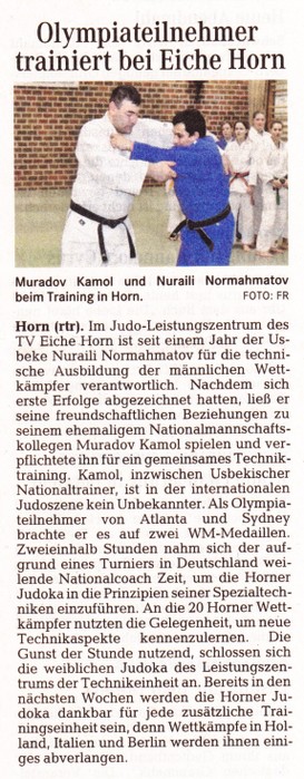 Olympiateilnehmer trainiert bei Eiche Horn ( Weser-Kurier 05.04.2012 )