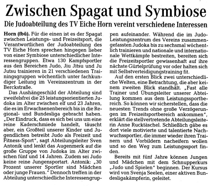Horner Judoka beweisen Vielseitigkeit ( Horner Magazin M\'e4rz April Mai 2012 )