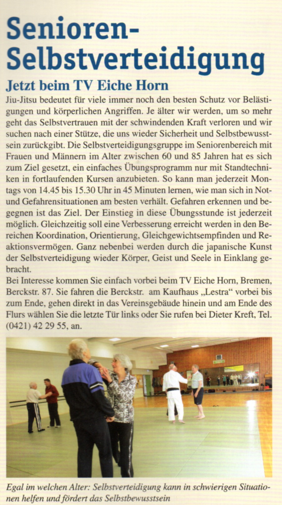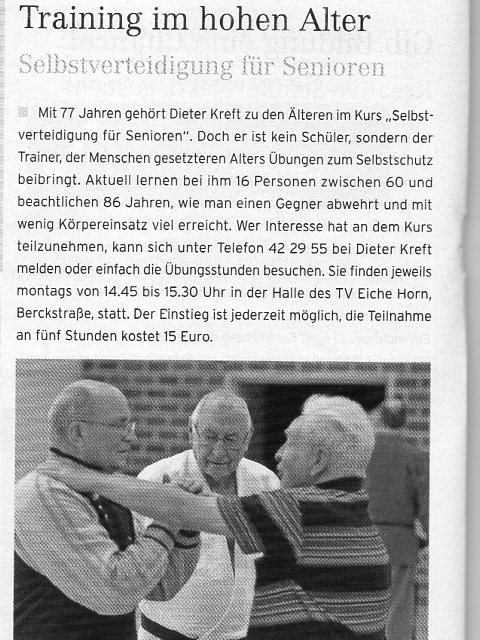 Selbstverteidigung f\'fcr Senioren ( Weser-Kurier 29.08.2013 )