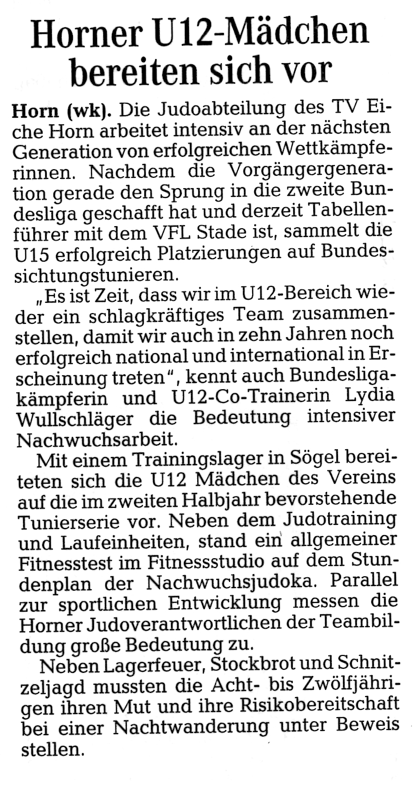 Horner Judom\'e4dchen beginnen Wettkampfvorbereitung