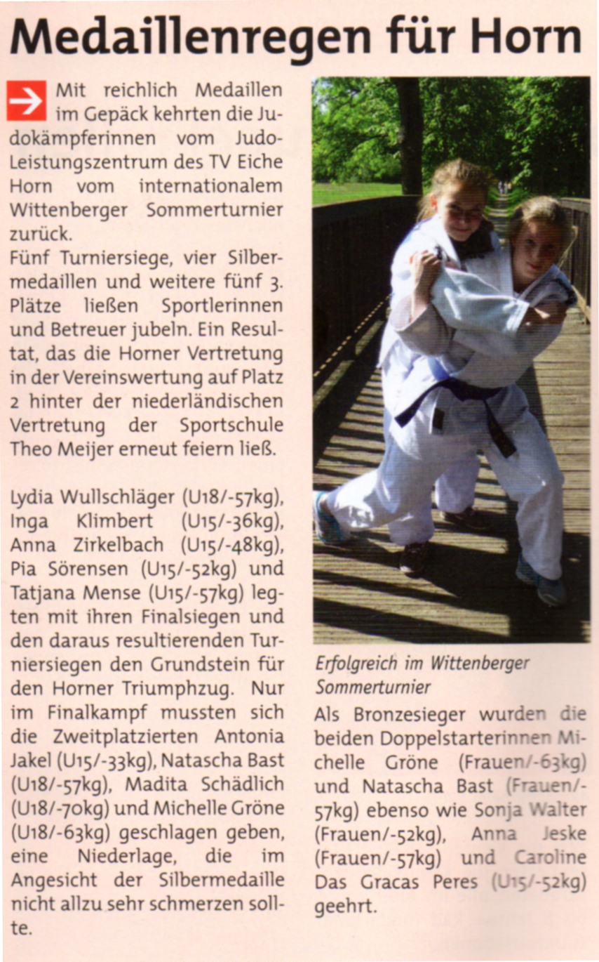 Medaillenregen f\'fcr Horner Judoka ( Weser-Kurier 27.06.2013 )
