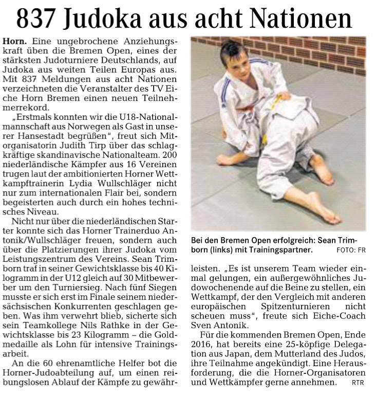837 Judoka aus acht Nationen ( Weser-Kurier 31.12.2015 )