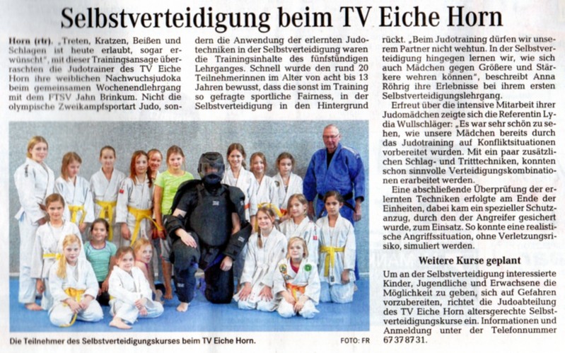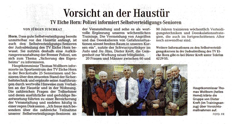 Selbstverteidigung beim TV Eiche Horn Bremen (Weser-Kurier 12.02.2015)