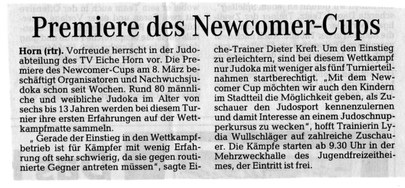 Premiere des Newcomer Cup 2015 ( Weser-Kurier )