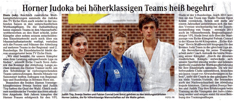 Horner Judoka bei höherklassigen Teams heiß begehrt ( Weser-Kurier )